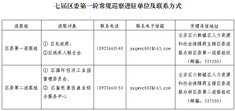 根据区委巡察工作统一部署,从2021年12月7日起,区委第一、二巡察组将对区民政局、区残疾人联合会、区循环经济工业园管理委员会、区畜牧兽医渔业综合服务中心4个区直单位及其党组织开展七届区委第一轮常规巡察,为期约60天。